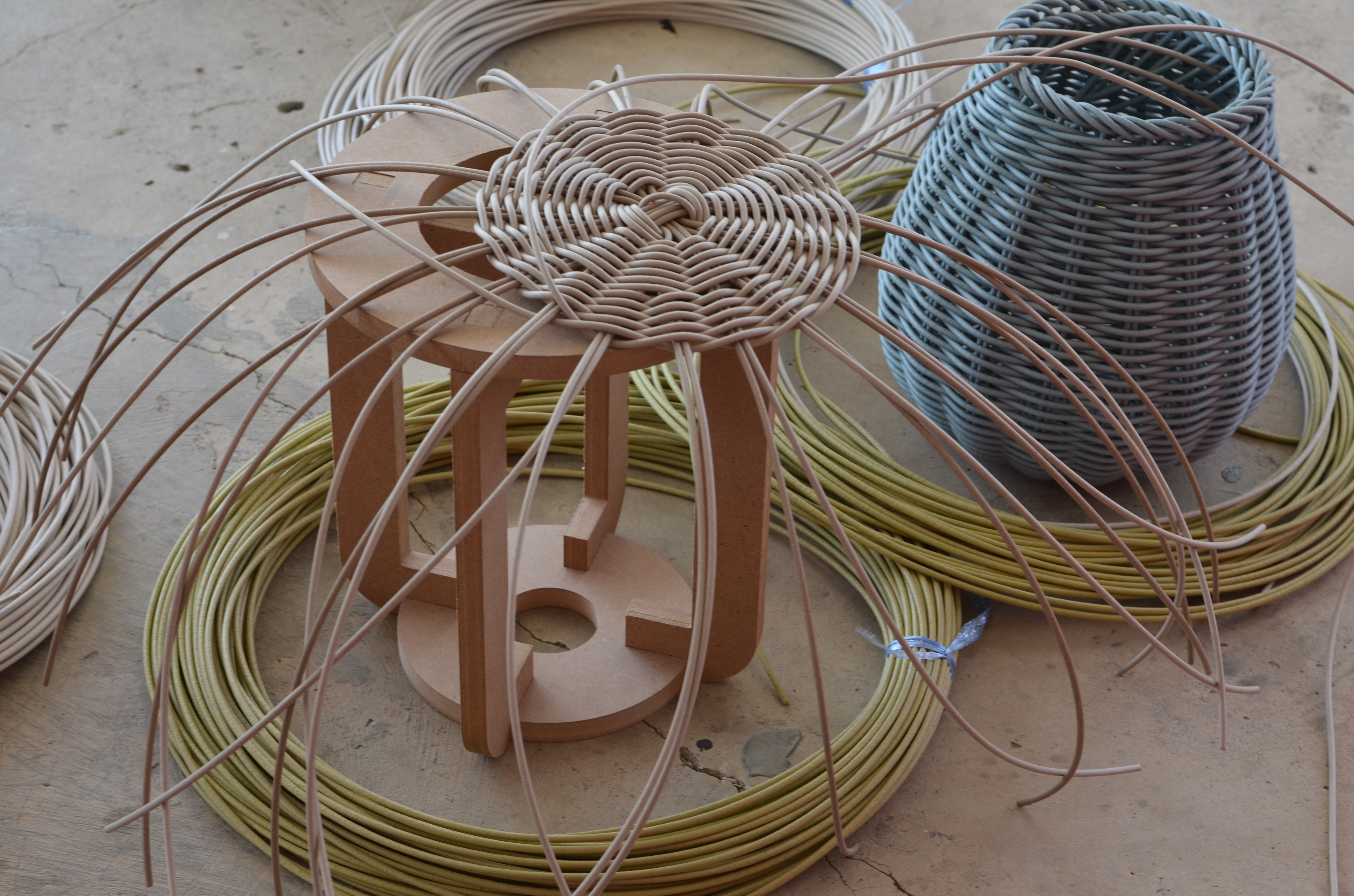 In terms of design, we have developed a system of wooden structures in four different sizes. These structures guide artisans in easily weaving along the frame, ensuring standardized form and size. The accessible nature of these furniture items makes them suitable for use in residences, restaurants, and hotels.